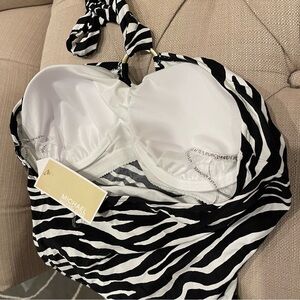 NWT MICHAEL Michael Kors Womens Logo-Ring Blouson Tankini Top M Great condition