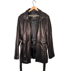 AM Studio | Black Front Zip Belted Leather Jacket Size XL