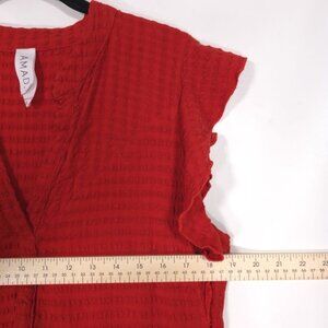 AMADI Anthropologie LINEN Blend Red Flutter Sleeve Dress Robe SMALL CD-6705