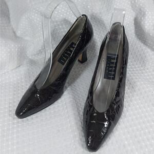 AMALFI! BROWN CROCODILE IMPRINT PATENT LEATHER NIP TOE HEELS, PUMPS! SZ 7AA