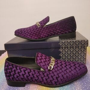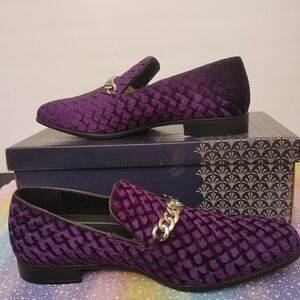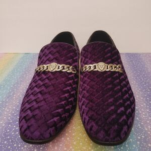 AMALI MEN'S DIAMOND QUILTED EMBOSSED FAUX VELVET LOAFER WITH METAL CHAIN.