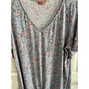 AMANA Short Sleeve Top Size 2X Blue Floral