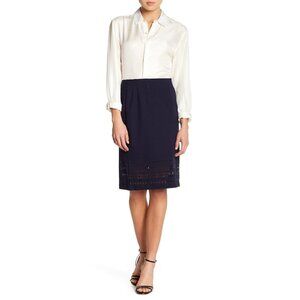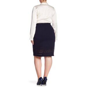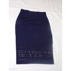🆕AMANDA & CHELSEA from Nordstrom Laser Cutout Stretch Pencil Skirt Navy Blue XS