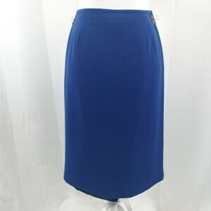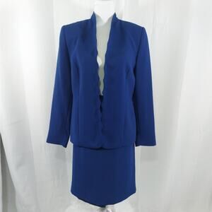 AMANDA SMITH! RICH ROYAL BLUE SCALLOPED OPEN FRONT SKIRT SUIT SET! SZ 8