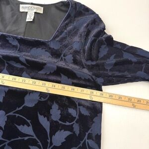 AMANDA SMITH Shift Dress 10 Navy Floral Burnout Velvet Square Neck Long Sleeve