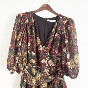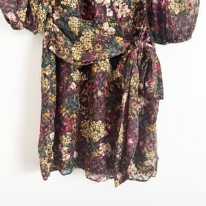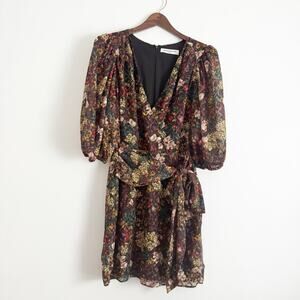 AMANDA UPRICHARD Alida Dark Floral Wrap Mini Dress Large L