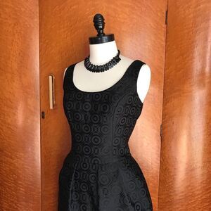 🎯 AMANDA UPRICHARD 🎯 Inky Black Bullseye Weave Cocktail Dress SIZE L.