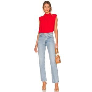 AMANDA UPRICHARD Fabienne Sleeveless Top Pleated Flowy Crimson Red Women's M