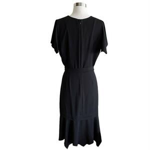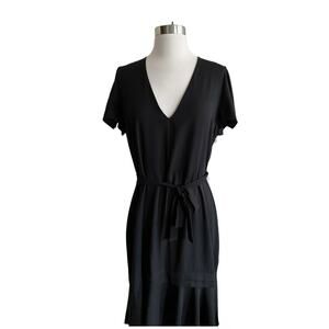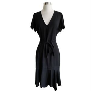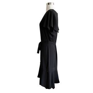 AMANDA UPRICHARD Graciela Midi Dress Black Belt Cap Ruffle Sleeves NWT Large