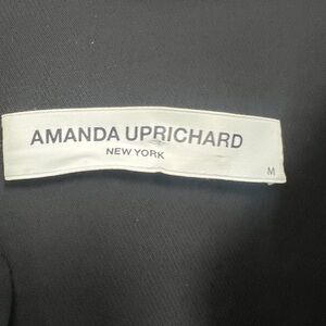 This chic black blouse by Amanda Uprichard features a relaxed fit with 3/4 sleeves and a mandarin collar. Its minimalist design and lightweight fabric make it a versatile addition to any wardrobe, perfect for both casual and formal occasions.
