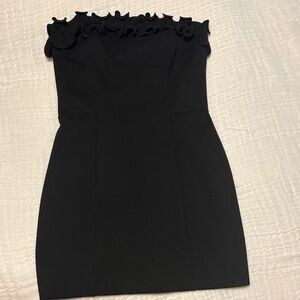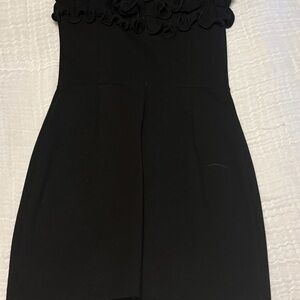 Black ruffle top mini strapless dress thick material very flattering