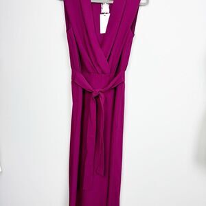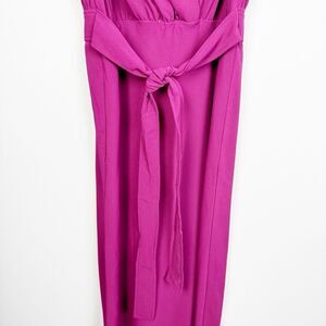 Gorgeous magenta color midi dress by Amanda Uprichard - sold at Revolve and upscale boutiques. Flattering v-neckline. Sash tie belt. Style is called Lamarca and color is called Syrah. Brand NWT. Women’s size medium.