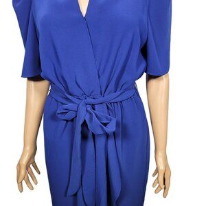 AMANDA UPRICHARD NY Women's Royal Blue Faux Wrap Short Sleeve Midi Dress Size M