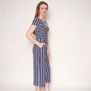 AMANDA UPRICHARD Navy Amery Striped Jumpsuit Small