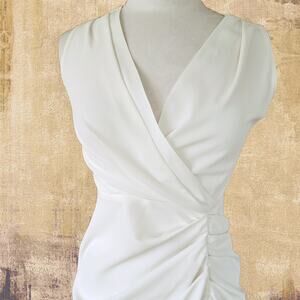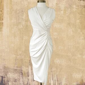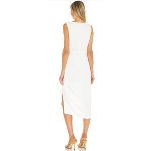 AMANDA UPRICHARD Pomona Ruched Slit Midi Dress in Pale Ivory Size Small Revolve