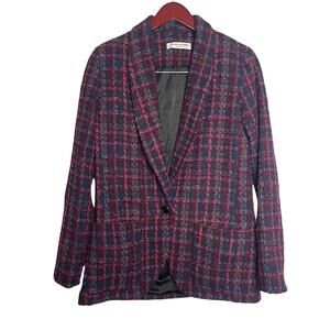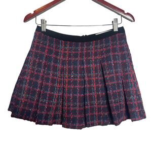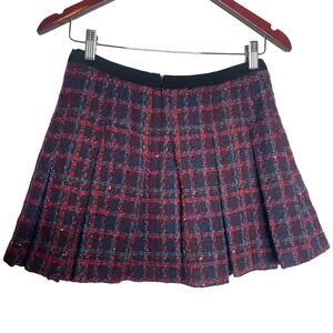 AMANDA UPRICHARD SET Tweed Shawl Collar Blazer & mini pleated skirt plaid navy red S. Selling as set together . Front single button closure. Side pockets. Padded shoulders. Tweed fabric. Skirt: Dixon tweed pleated mini skirt, hidden back zipper