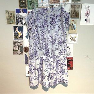 super cute flirty feminine girly purple and white floral pattern off the shoulder romper with tie sleeve accent detail and fitted elastic waist made out of silk from the brand amanda uprichard