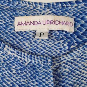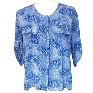 AMANDA UPRICHARD BLUE SNAKE SKIN MORGAN BUTTON DOWN HI LO BLOUSE ROLL TAB