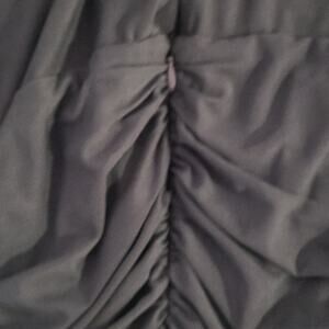 Long sleeve top Sheer mesh material lined ruched bodice Cut out twist neckline Back button and zipper closure. In great condition!! Size XS