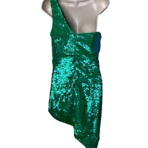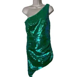 AMANDA UPRICHARD Sierene One shoulder Mini Dress Spring Green Sequin sz S