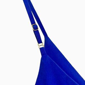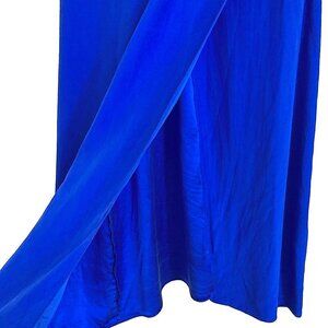 AMANDA UPRICHARD Blue Silk V-Neck Spaghetti Strap Midi Slip Dress