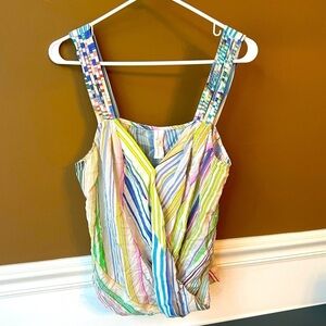 AMANDA UPRICHARD Striped Lightweight Tank Top Size Large Silk
