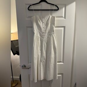 Only worn once and in good condition! It will need a dry clean and possibly an alternation to fix the boning on the side.