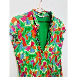 AMANDA PRICHARD Women's Green Floral Collared Shirt Pierre Midi Dress Size XL