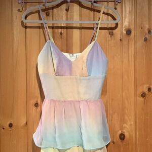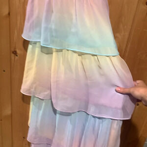 Amanda Uprichard Thaddea maxi dress. Pastel colors in tiered style, fully lined. Adjustable straps. No callouts to note. Stock photo added for reference from the website.