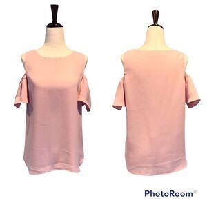 AMANDA UPRICHARD Cold Shoulder Blouse Top Short Flutter Sleeve Light Pink XS