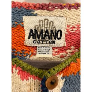 AMANO Multicolor Cotton Knit Pattern Cardigan Sweater Top