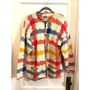 AMANO Multicolor Cotton Knit Pattern Cardigan Sweater Top Mens Size Large