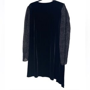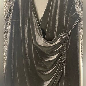AMARYLLIS BLACK VELVET FAUX WRAP SIDE RUCHING POLKA DOT SHEER LONG SLEEVES