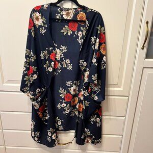 AMARYLLIS Navy Floral Kimono Ruana Wrap Topper Coverup (Size 2X)
