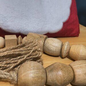🛋️ (2x) STYLISH WOODEN BEADED ROPE DISPLAYS (HAD ON MY FIRPLAE MANTLE & THEY LOOK STUNNING & FESTIVE)