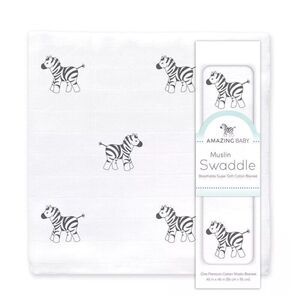 Introducing the Amazing Baby Newborn Muslin Zebra Swaddle, a soft and breathable blanket perfect for your little one. Measuring 36" x 36", this swaddle is designed with your baby's comfort in mind, featuring a white cotton material and a jungle theme. Ideal for both boys and girls, this swaddle is perfect for nap time and bedtime. With its breathable features, your baby will stay cozy and comfortable all night long