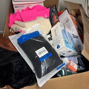 The items will come in a large box.. The size of the package are on the pictures. Boxes will contain multiple items worth more than double of what you paid for the box.
