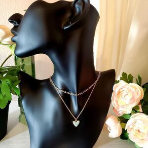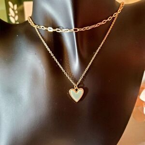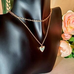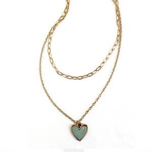 AMAZONITE Stone Heart Layered Goldtone Necklace