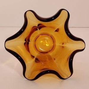 Today I have a Vintage SWUNG Vase. This is Hand blown and Amber in color. It can be used as a Candy, a votive or relish dish.