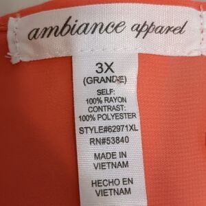 AMBIANCE Apparel Coral Colored Slight Sheer Top 3X