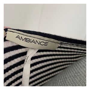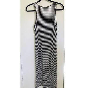 Ambiance striped maxi dress tank style. Ribbed with lots of stretch! Navy/white striped, almost looks black. Ribbed. Approx 36” from armpit to hem. It’s a L juniors but my daughter who is a size 2-4 fit it nicely. I’m a 6-8 and it fit me too. Bonus!