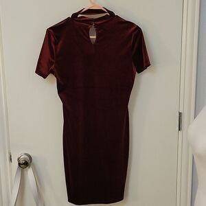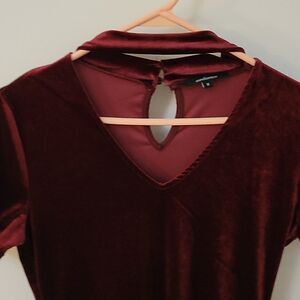 AMBIANCE Maroon Choker Velour Velvet Valentine's Short Sleeve Mini Dress