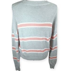 AMBIANCE APPAREL GRAY PINK & WHITE STRIPE SWEATER SZ.S EUC.