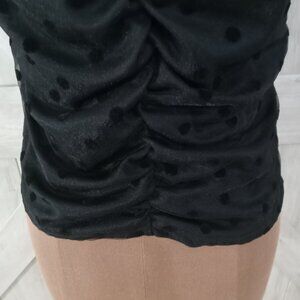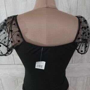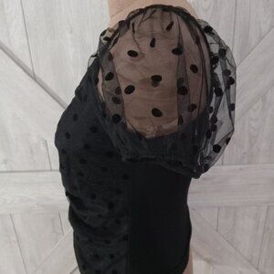 AMBIANCE-NWT Black Sheer Lace Polka Dot Puff Sleeve Elegant Mesh Top-Size-M