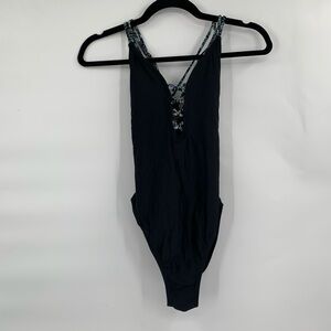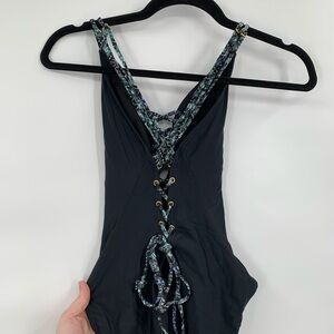AMBRIELLE Crochet Lace Up Swim One Piece Open Back