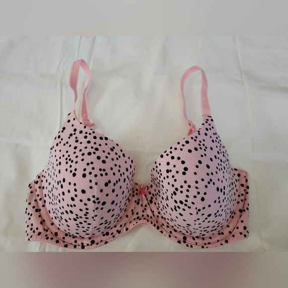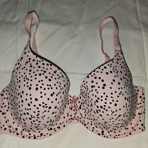 This is for a used but good shape, Ambrielle bra. It's is pink with black dots. The size is a 34C
