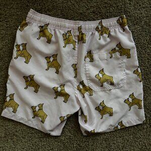AMBSN bulldog shorts, AMBSN dog print swim shorts, light pink men’s shorts, funny print summer shorts, AMBSN drawstring shorts, beachwear men’s small, bulldog graphic shorts, trendy AMBSN apparel, surf brand shorts, casual men’s lounge shorts, quick dry dog print shorts, pink shorts with dogs, AMBSN smiley patch shorts, stylish men’s swim trunks, lightweight polyester shorts, retro animal print shorts, statement summer shorts, AMBSN boardshorts small, beach party shorts, gift for dog lovers