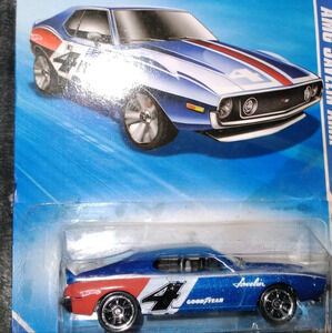 Vintage Hotwheels on card. AMC Javelin AMC Rare Blue #4 (red white and blue)