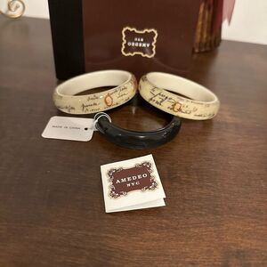 AMEDEO NYC Lucite Bangle Bracelets Cameos Satin Charcoal HSN