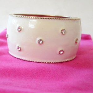 AMEDEO NYC Oval White Enamel Hinged Cuff Bangle Bracelet Size 7-1/2"